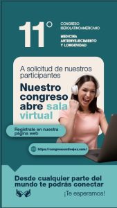 Dada la demanda de participantes por asistir al Congreso se abrió una Sala Virtual, para seguir las diferentes conferencias desde cualquier parte del mundo, en tiempo real , en tal sentido el registro se puede realizar a través de : www.congresoantivejez.com. Para obtener la información necesaria a fin de inscribirse con un costo especial, y seguir muy de cerca las actividades consultar la página web www.congresoantivejez.com ; así como las redes sociales: @doctorantivejez, @congreso_antivejez; @pccpublicidad.