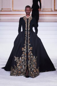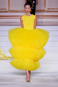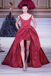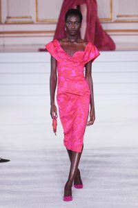 Se explora el concepto de opulencia extrema y lo que significa hoy en día, y no sólo en su manifestación visual. Hay opulencia en el tiempo y la atención dedicados a la creación de una pieza opulencia en el compromiso con lo mejor de la construcción y la artesanía del atelier de Carolina Herrera. Opulencia en cómo se siente una mujer cuando se pone el vestido, la voluminosa forma de su falda sostenida por capas de tul ligero como una pluma, o un traje a medida cortado al milímetro.