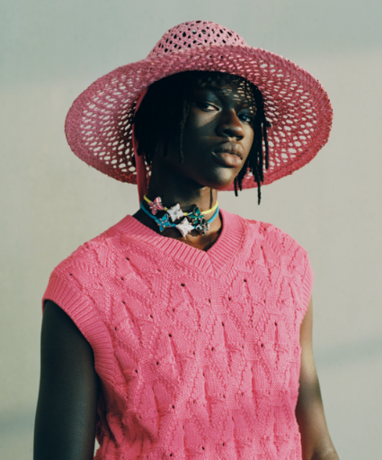 Los zapatos interpretan la vida junto al mar: la bota de combate Oberkampf reaparece con un monograma negro en relieve en nubuck, el zueco Shark aparece en azul marino; la zapatilla XL se presenta en azul o naranja con nuevos dijes de encaje; y el LV Trainer se reinventa en lienzo de rayas veraniegas en rosa, beige o azul inspirado en el forro de los antiguos baúles Louis Vuitton. Un derby en piel satinada adapta las propiedades de una zapatilla con forro técnico squishy, lengüeta acolchada y suela de goma. El capítulo Mirage presenta dos nuevos motivos de bolsos: el Aqua Garden es un monograma con efecto submarino impreso en lona y barnizado con adornos de gotas de agua, que aparece en azul cristal o azul abismo en un Keepall 50, 35 y 25, un Mini Soft Trunk , una mochila Christopher y un carrito Horizon; el Washed Denim es un monograma en relieve que evoca la erosión del sol y el agua grabado en bolsos de mezclilla que incluyen un Keepall y una mochila Montsouris. La joyería imita el mármol en collares de cadena, pulseras y lazos de bolo, mientras que los accesorios reflejan el espíritu del verano en sombreros de pescador de mezclilla, gorros de ganchillo, toallas de playa y cojines de toalla.