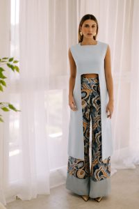 La colección está pensada para un clima tropical como el venezolano, pero sus piezas trascienden estaciones y se adaptan a cualquier armario, permitiendo múltiples combinaciones. Con cada prenda de “Ruhna”, esta artista de la moda invita a jugar con contrastes, que van desde un kimono en seda italiana, hasta la presencia poderosa, de trajes en cuadros azules o negros, con botones dorados que destacan.