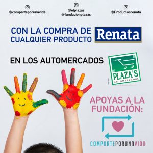 Solidaridad, empatía y compromiso son las palabras que definen esta noble iniciativa que desea crear conciencia y disminuir la desnutrición infantil en Venezuela, a través de la fundación Comparte Por Una Vida, una organización que promueve el desarrollo de los niños, su futuro para su progreso en la sociedad. Con la compra de los productos Renata en cualquiera de sus categorías en Automercados Plaza´s, estarás aportando al beneficio y soporte de esta organización. Esta campaña, está vigente a partir del 1 de mayo, finaliza el 31 de este mes.