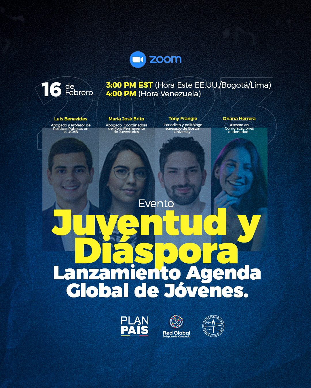 La actividad se realizó el 16 de Febrero vía Zoom, en la que varios líderes juveniles tuvieron una discusión sobre el contexto y situación de los jóvenes venezolanos dentro y fuera del país.