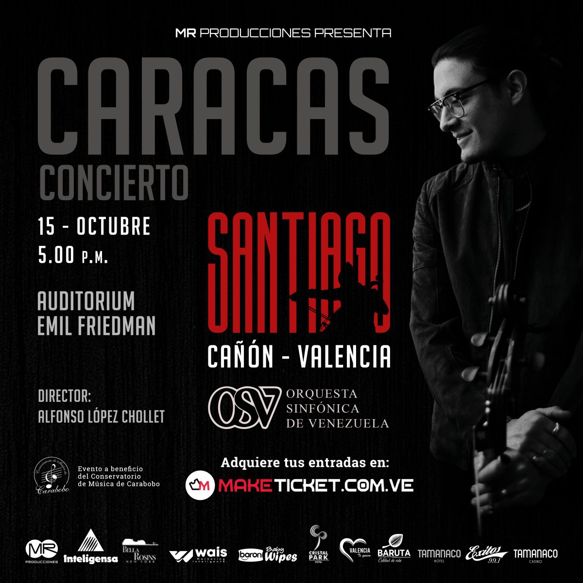 El esperado concierto en Caracas será realizado en el Auditorium del colegio Emil Friedman, el sábado 15 de Octubre, donde estará acompañado por la orquesta Sinfónica de Venezuela bajo la batuta del maestro Alfonso López Chollett, además se darán cita reconocidos músicos y personalidades que desean compartir con este joven talento latinoamericano. Una oportunidad única para ampliar la cultura musical.